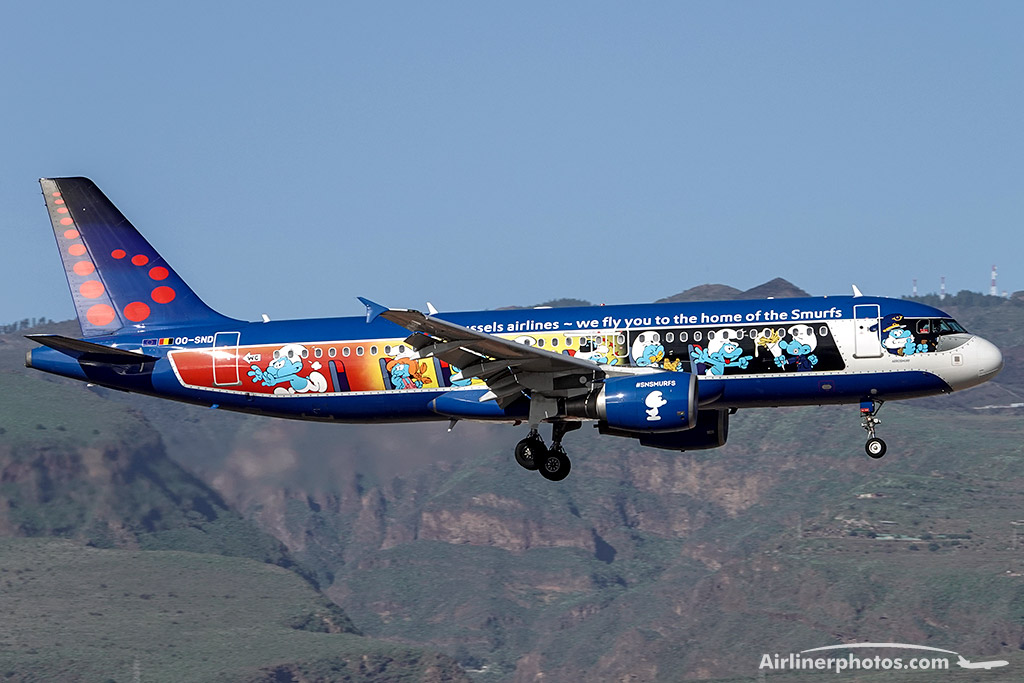 OO-SND Airbus A320 Brussels Airlines, Smurfs colors